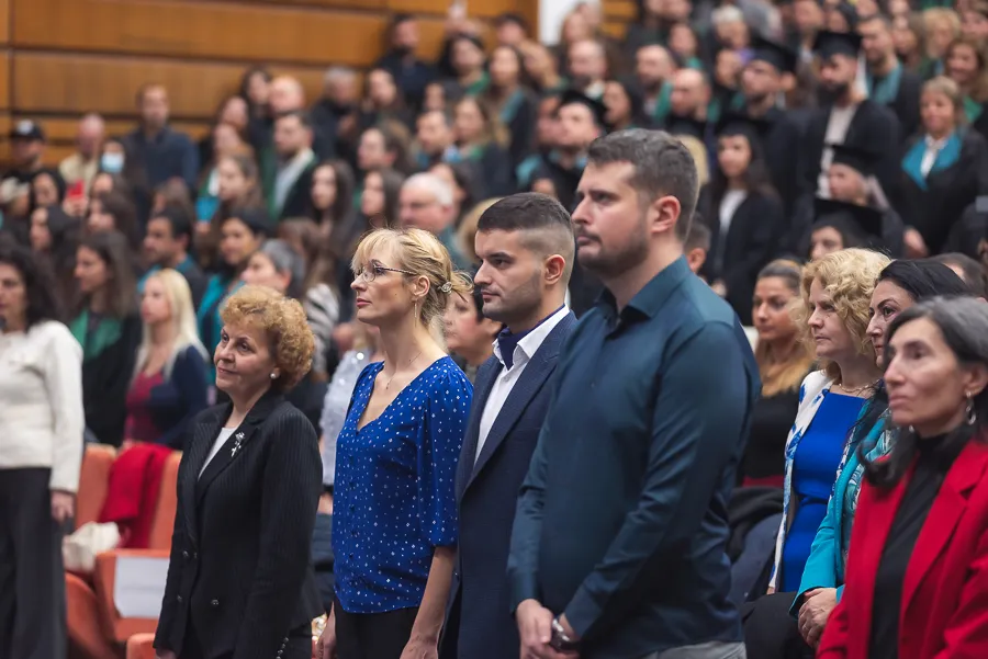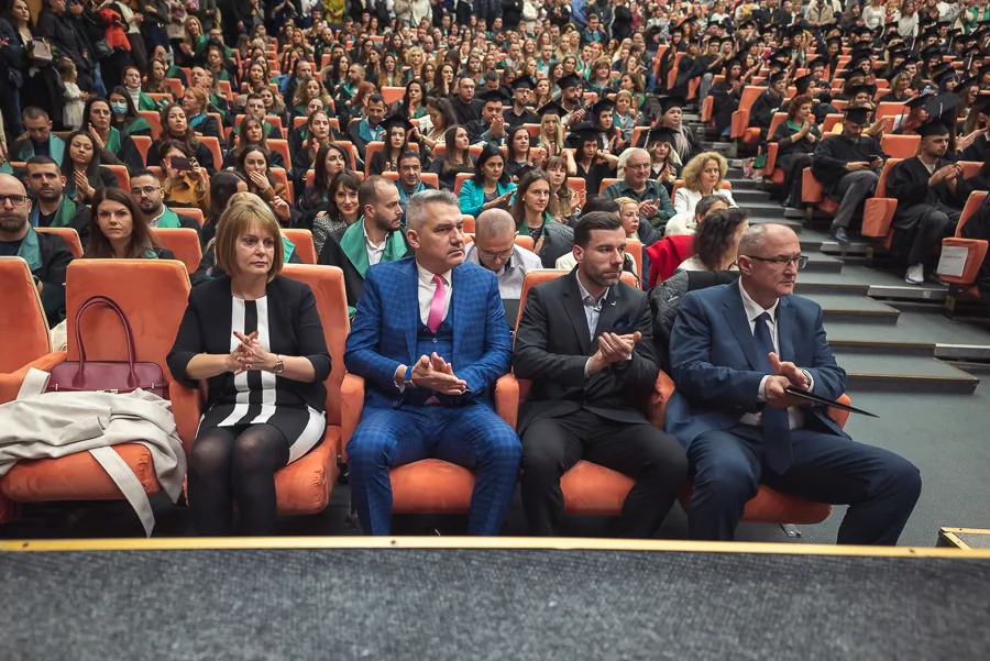 „Да помогаш, да подкрепяш, да лекуваш, да се грижиш, да управляваш, да водиш – това е мисия, която носи огромна отговорност и още по-голяма стойност“, подчерта тя в обръщението си към абсолвентите и ги увери, че успехът от завършването трябва да им носи заслужена увереност и сили за нови постижения.