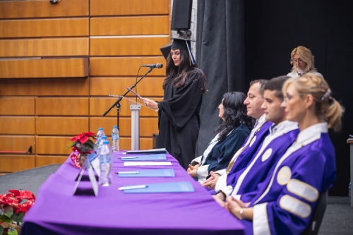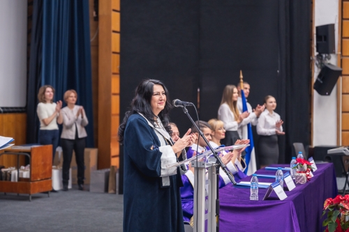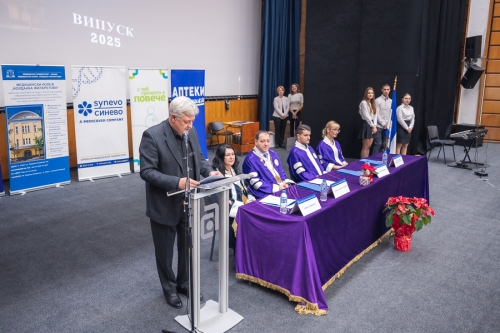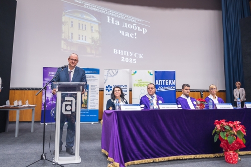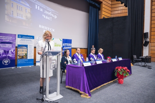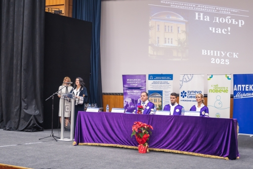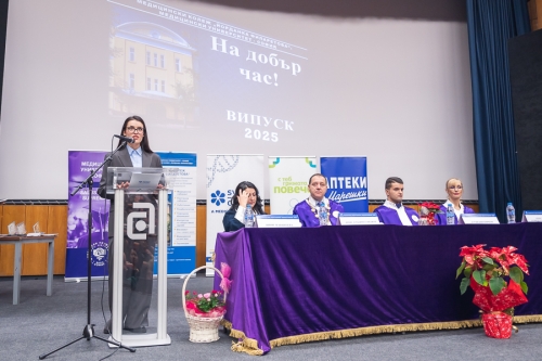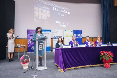 Проф. Мая Визева, Директор на Медицинския колеж, отправи послание с напътствия към дипломантите от всяка специалност, като подчерта, че „няма по-висша мисия от отдадеността в името на здравето на човека и обществото“.