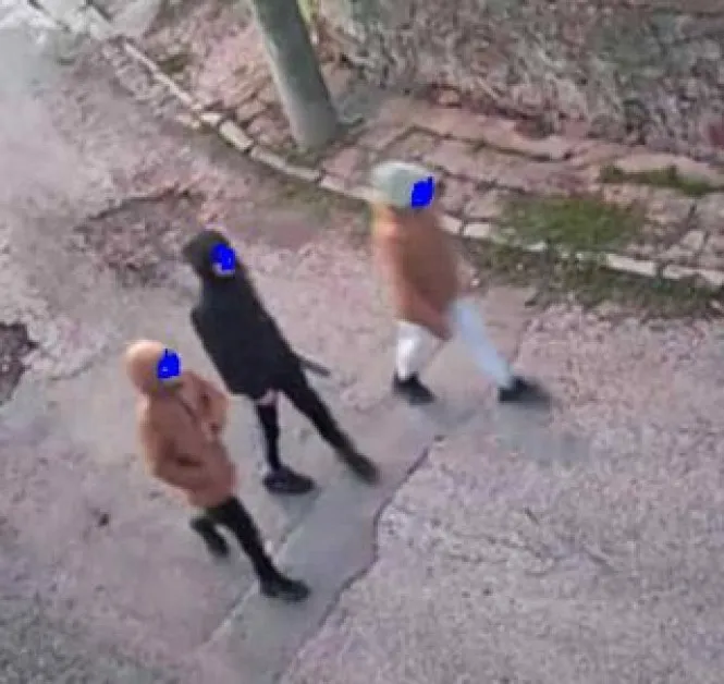 „Здравейте, съкварталци, качвам снимки на три деца, които днес в 17:00–17:15 псуваха, обиждаха и тормозеха инвалид, като биеха и кученцето му. Когато излязох, избягаха. Умишлено не качвам лицата им, тъй като са деца. Сигурна съм, че родителите им ще ги разпознаят и ще вземат мерки. Следващия път ще се обърна към полицията, като ще предам и записите. Кв. Кремиковци, улица „Равнец“.“