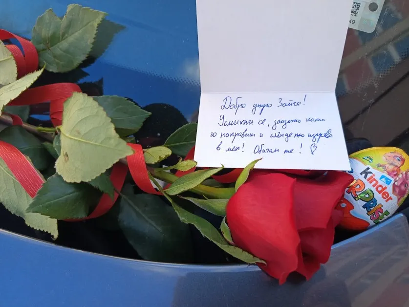 Сутрините ни напоследък често започват с фиш, драскотина по вратата или повдигната чистачка като пасивно-агресивно „добро утро“. Този път в Студентски град някой е решил да остави нещо друго под нечие предно стъкло. Не бележка с укор. Не предупреждение. А роза.
