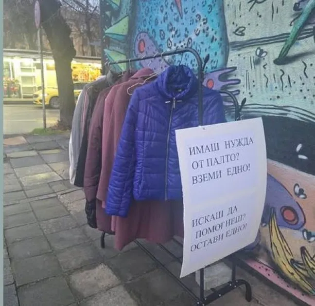 С един прост, но силен жест неизвестен човек се е опитал да подари топлина на онези, които не могат да си позволят топли дрехи в мразовитите дни. Без имена, без условия – само съпричастност и грижа към другия.