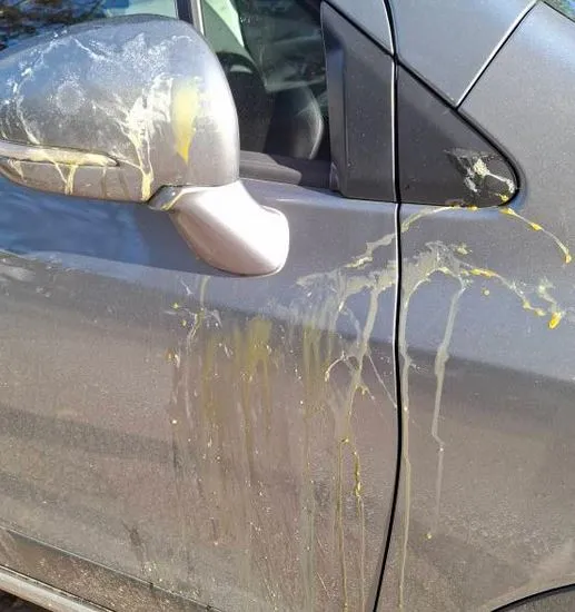 Пакост застигна дама от София – личната кола на Милена Димитрова станала обект на лепкаво нападение. Паркираният автомобил бил замерен с яйца по вратата и огледалото, докато бил спрян наред с други коли на улица в квартал „Мусагеница“.