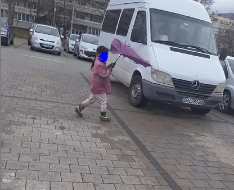 „Госпожицата от снимката обикаля между колите и проверява всяка дръжка дали се отваря. Направих забележка, но резултатът е – към следващата редица автомобили“, пише сливналийката. Тя споделя и кадър, уловил момиченцето. То върви по паркинга, облечено с тънък суичър и без яке.