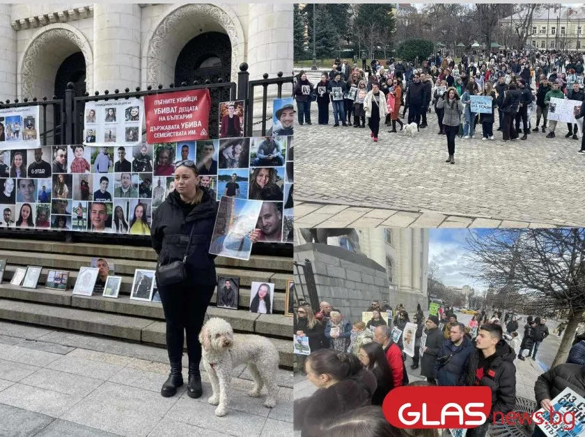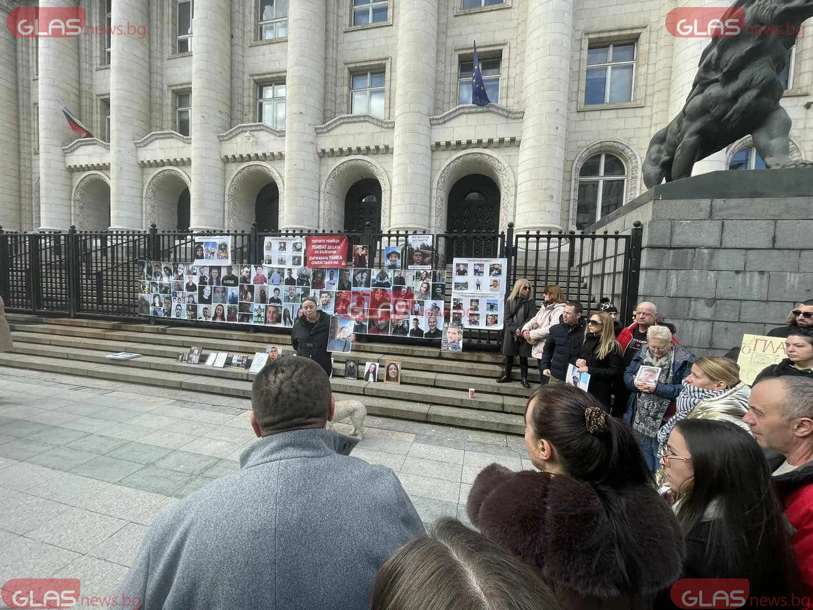 Емоциите пред Съдебната палата бяха силни. Майки и бащи държаха снимки на децата си, запалени свещи и плакати с надписи „Справедливост сега“ и „Ефективни присъди“.