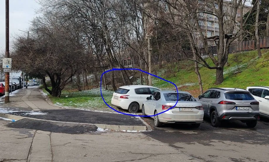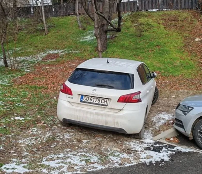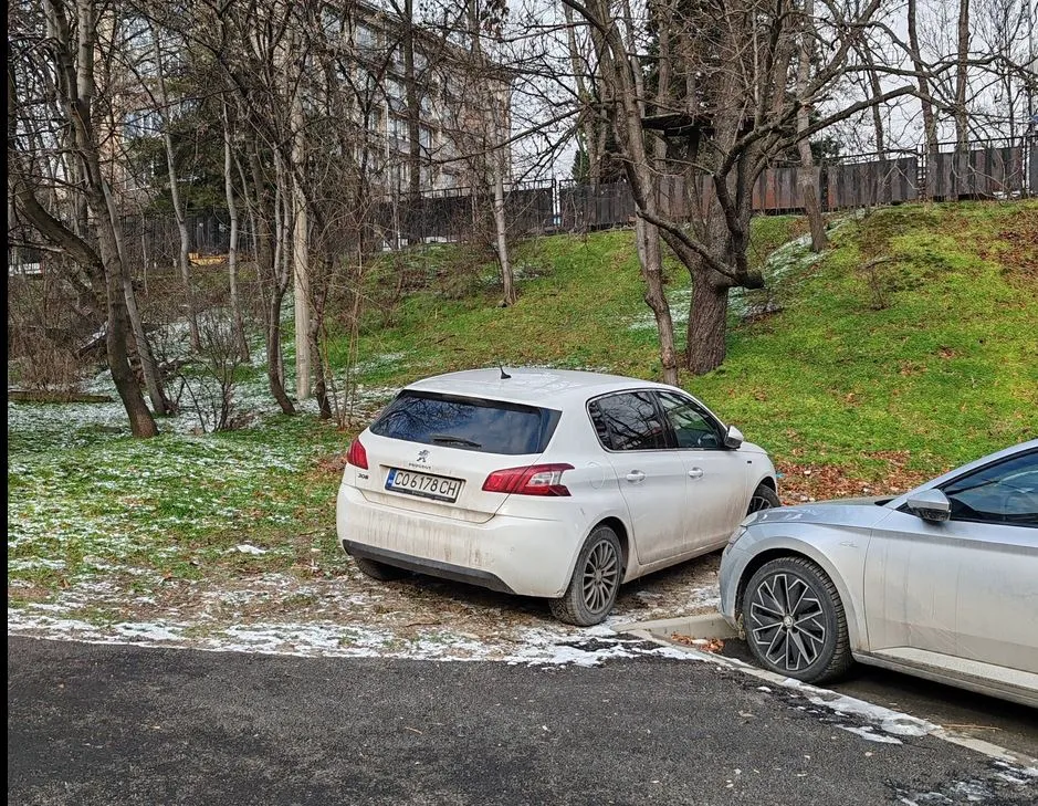 Именно на такава сцена се натъква столичанин в кв. "Слатина" и я увековечава със снимки – бяло Peugeot 308 е решило да не се ограничава от сивите рамки на асфалта и е паркирало… в подножието на хълм.