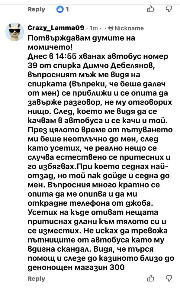 Публикацията на Ирен предизвика множество коментари, в които гражданите споделят подкрепа към потърпевшите и апелират за повече внимание и контрол в градския транспорт.
