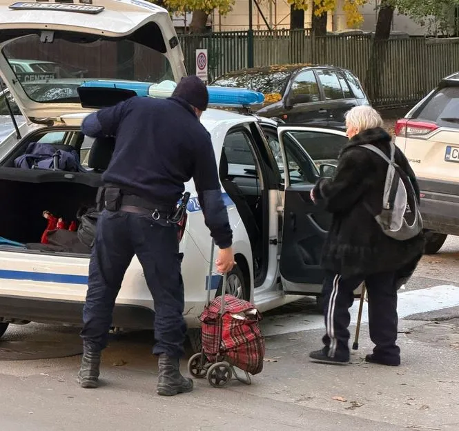 Шопов разказва как полицаите забелязали възрастна дама, седнала изморена на тротоара с торби от магазина, и веднага ѝ предложили да я закарат до дома ѝ. Те качват тежката количка в багажника на патрулката, а жената сяда в купето. Постъпката им предизвика вълна от коментари и благодарности към служителите, припомняйки, че добротата все още съществува.