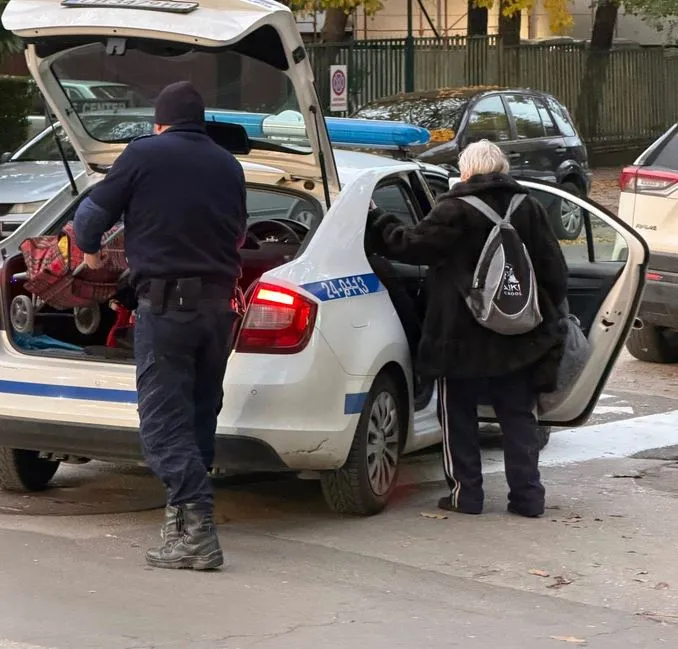 Двама мъже в униформи видяха възрастна баба, изморена и натоварена, беше седнала на тротоара с покупките от магазина. Докато минавах през тях чух, че ѝ предлагат да я закарат до тях.