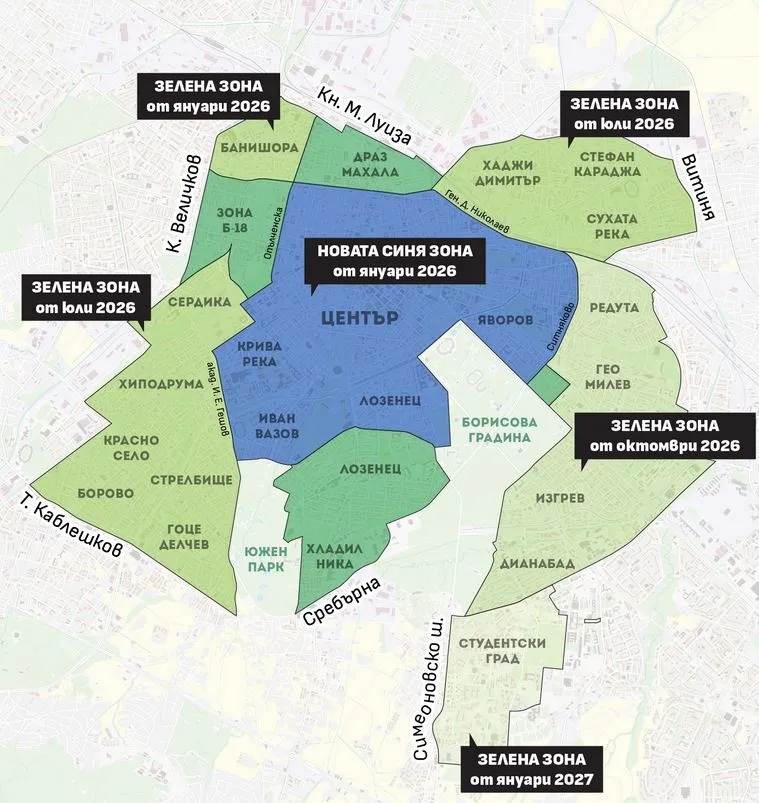 Въвеждането на новите зелени зони ще става поетапно през 2026. Студентите ще могат да си вадят винетен стикер в Студентски град.