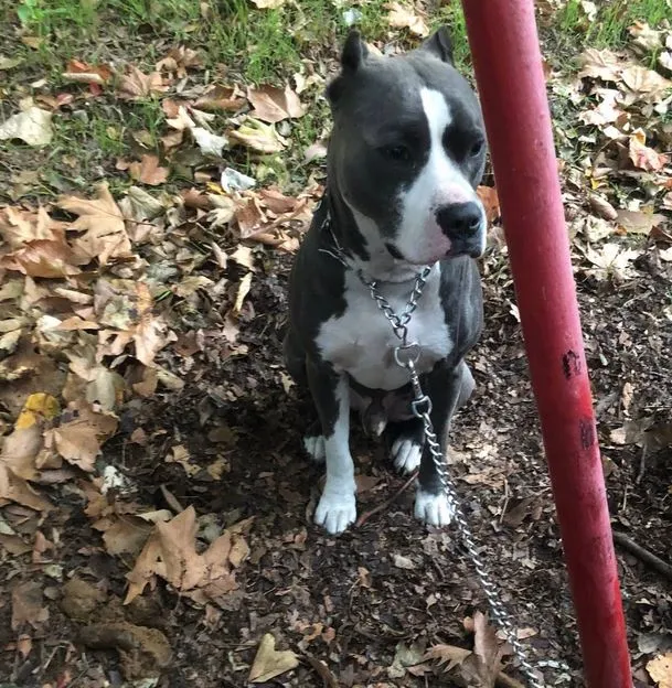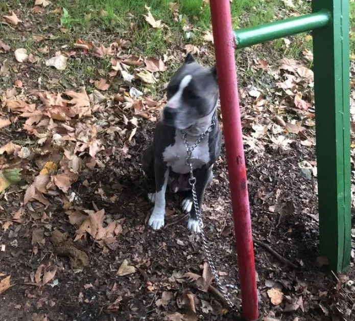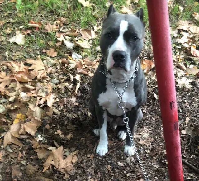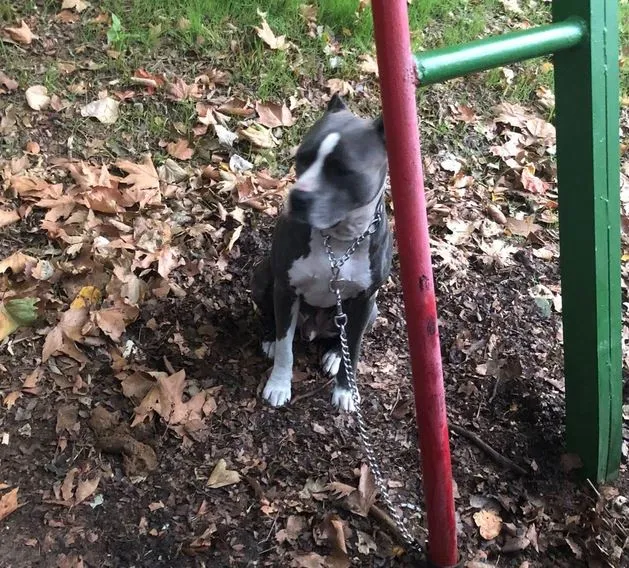Тъжна гледка привлече вниманието на варненци. Красив сив питбул се оказал завързан за лост някъде в Морската столица.