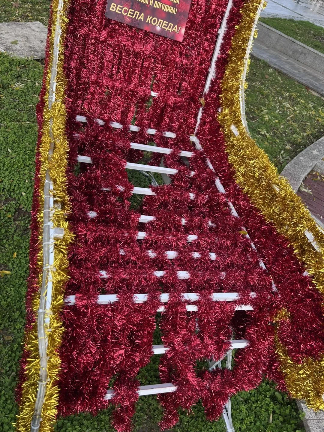 На снимките ясно се вижда, че конструкцията е разчекната, гирляндите изглеждат като прегазено чудовище от „Гремлините“, еленът има гръб, напомнящ на сцена от документален филм за диви хищници.