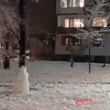 На снимките се вижда мъж, който държи две топки, направени от сняг. На единия кадър даже е уловен и моментът, в който мъжът хвърля една от топките - ако твърденията са верни, то по някой автобус.