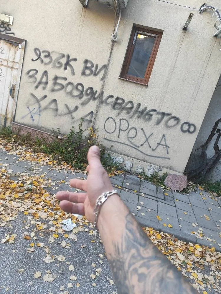Трудно е да решиш кое е по-впечатляващо – липсата на възпитание или увереността, че вандализмът е повод за шега. Докато други хора влагат време, средства и усилия да оправят фасади, боядисват, чистят и поддържат, някой като „Ореха“ решава, че ще остави следа. И го прави – черна, мазна и миризлива следа.