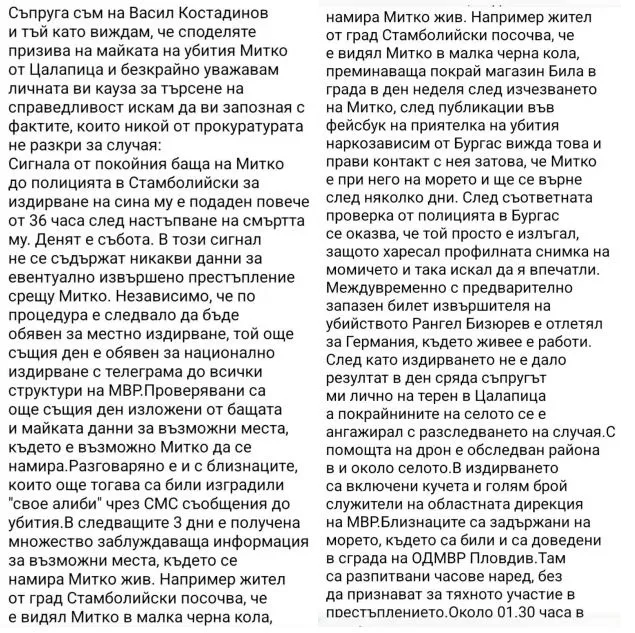 Друг е въпросът, че представената от Костадинова информация бе опровергана от майката на убития Димитър Малинов - Атанаска Бакалова, която задава и конкретни въпроси: