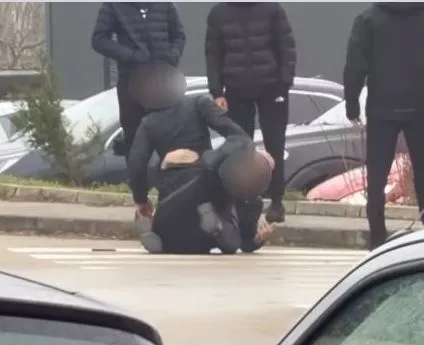На видеото, разпространено от анонимен гражданин, се виждат две видимо непълнолетни момчета, облечени в черно, които си разменят серия от удари. Те падат на пътното платно, но боят продължава.