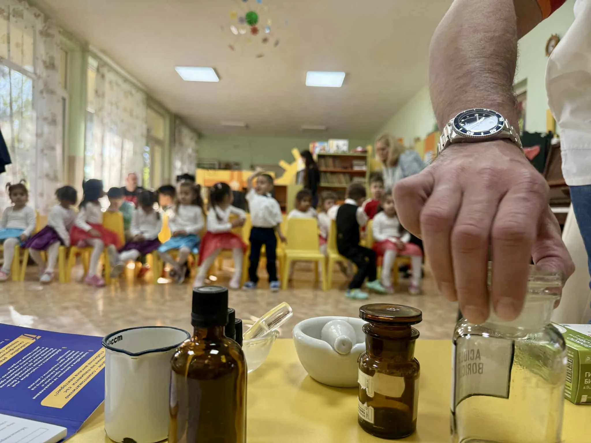 В уроците децата научават какво представлява аптеката, кой е фармацевтът и какво може да се купи там. Демонстрират се безопасни мостри – празни опаковки от сиропи, блистери, витамини и чайове, за да се обясни по достъпен и забавен начин какво е капсула, сироп или ампула и защо лекарствата не са играчки.
