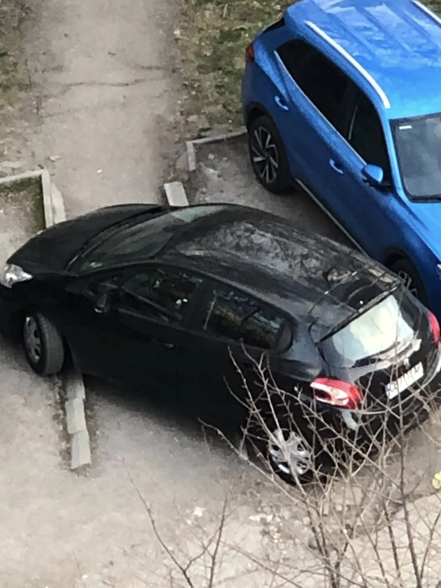 Колата е паркирана под ъгъл, заемайки почти цялата ширина на пътеката и оставяйки хората без възможност да преминат нормално.