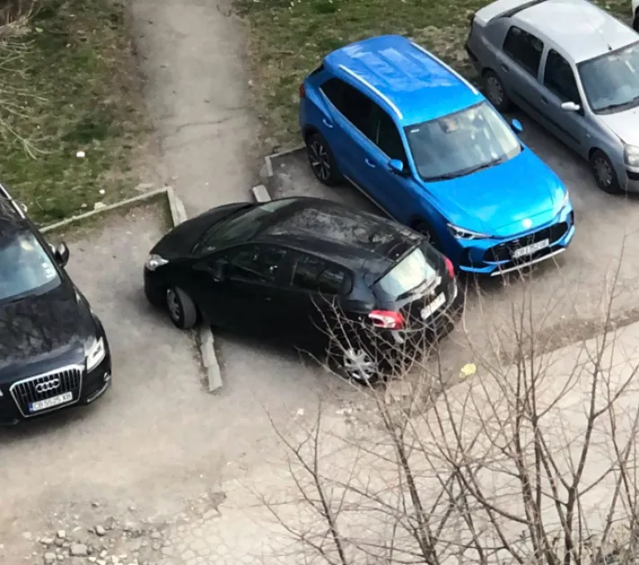 Пореден случай на абсурдно паркиране в София предизвика възмущение сред жители на квартал „Лагера“. Снимка, споделена в социалните мрежи, показва автомобил, спрян директно върху пешеходна пътека между блокове.