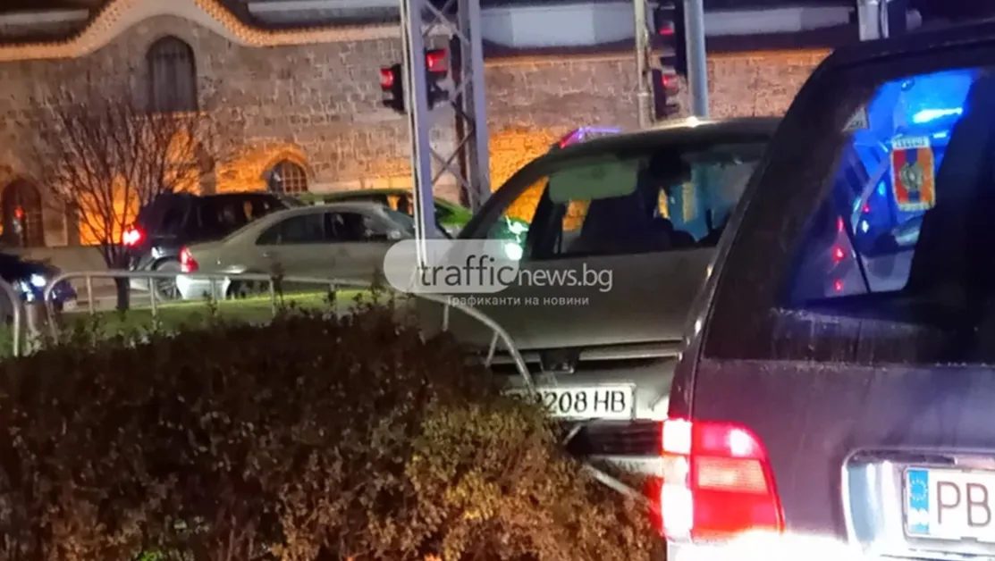 Кола се е врязла в разделителната ограда между платната на булевард "Цар Борис Трети Обединител" в района на Чифте баня.