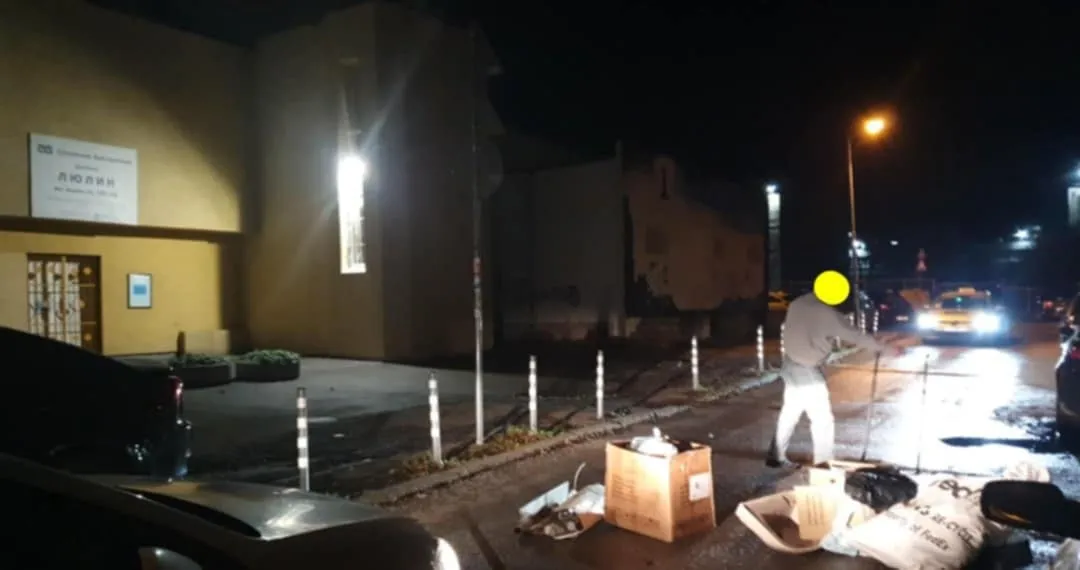 Тя разпространява и кадри, на които се виждат големи бели чували, метални елементи, кашони и друга смет, поставена в стройна линия на улицата. Имало дори метална мивка...