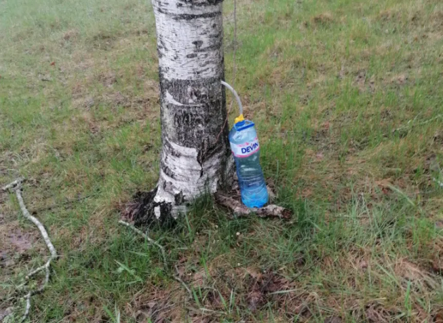 Снимките показват пробити стволове и поставени импровизирани съдове за събиране на сок, което според специалисти може да доведе до сериозно увреждане и дори загиване на дърветата, ако не се извърши правилно.