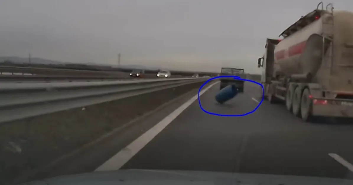 Бидон излетя от товарен автомобил и полетя към движещ се автомобил. Случката се разиграва посред бял ден на Северната скоростна тангента, а за нея алармира потърпевшият водач.