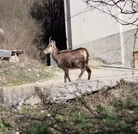 Планинска коза с интерес обикаляла край сградите посред бял ден, като някак иначе плашливият представител на вида се озовал на броени метри от родопчанина. Кадрите от срещата, заснети от Венцислав Странджалиев, са споделени в групата „Забелязано в Лъки“, като за броени дни събират хиляди положителни реакции.
