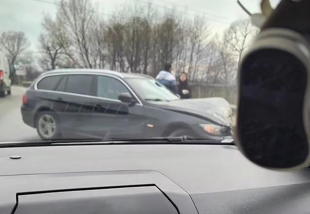 Лек автомобили "БМВ" се е блъснал в мантинелата на моста в софийския квартал "Абдовица". Предницата на комбито е със сериозни щети, а колата все още е на пътното платно.