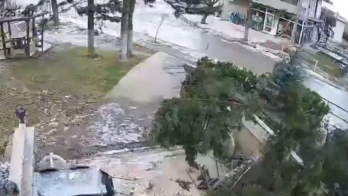 Нова съобщи, че са получили кадри от камери за наблюдение, които са регистрирали едно от падналите дървета. То чупи прозорец на местно заведение. Тъй като е било затворено, няма пострадали хора.