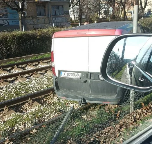 Лекотоварен автообил "кацна" на трамвайни релси в София.