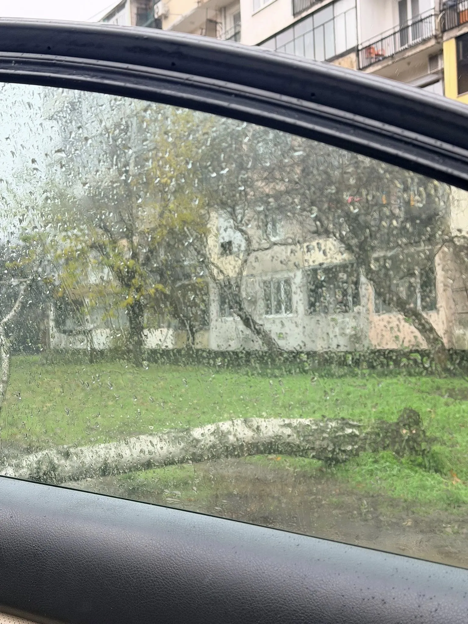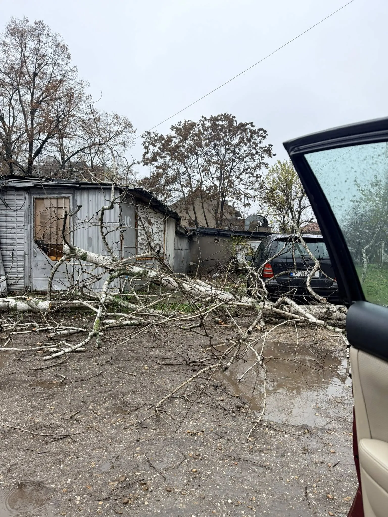 По кадрите се вижда, че клоните са паднали върху поне два автомобила, а теренът е осеян с кал и локви вследствие на проливните валежи през последните часове. Няма информация за пострадали хора.