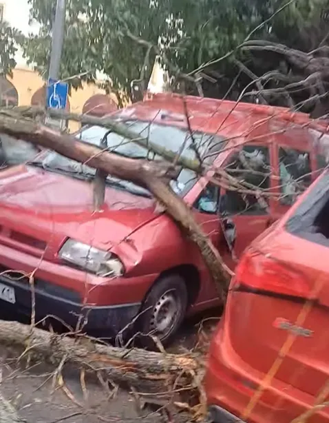 Дърво се стовари върху няколко автомобила в Сливен. Инцидентът е станал в центъра на града. Засегнати са най-малко три превозни средства. Нанесени са материални щети по колите, счупени са стъкла, огънати са ламарини.
