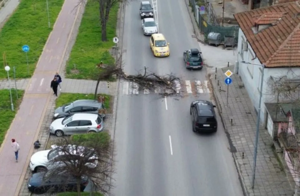 Наложи се противопожарен екип да разреже падналото дърво, а общински служители да изчистят настилката и да извозят дървения материал. Отстраняването на последствията продължи по-малко от час.