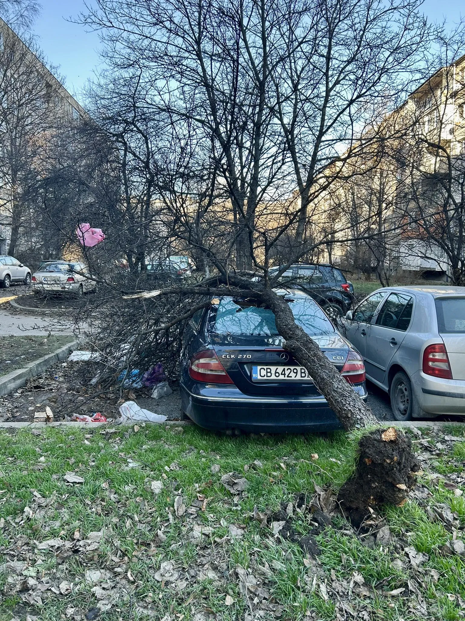 На друга улица в същия квартал дърво е паднало върху паркиран лек автомобил.