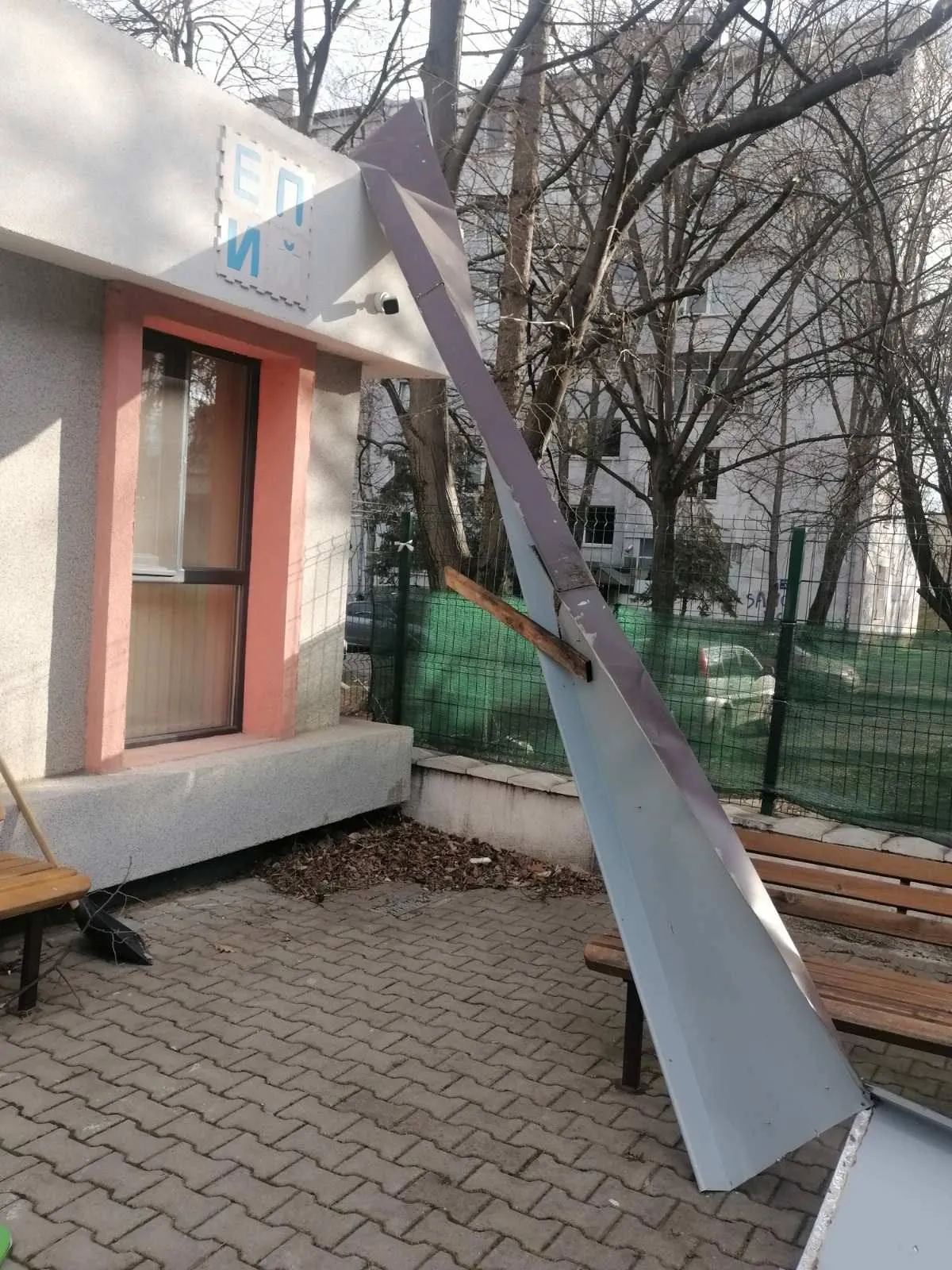 „Моля да се вземат спешни мерки за ремонт на покрива на ДГ 40. От силния вятър е хвръкнало уплътнение, освен ламарината, която се вижда на снимките. При един силен дъжд, покривът ще протече и ще причини по-големи щети“.