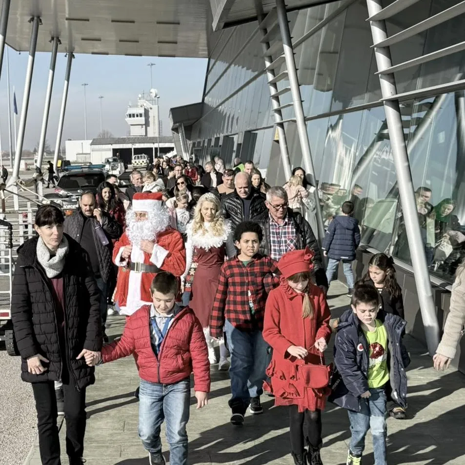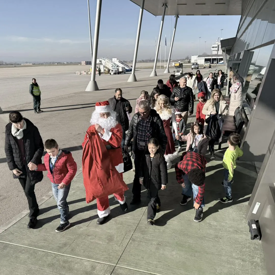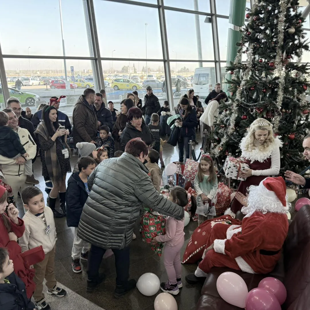 В седмицата преди празниците Летище Пловдив отново стана място на магия и вълнение, когато Дядо Коледа пристигна със самолет и пълен чувал с подаръци. По традиция добрият старец беше посрещнат от 30 деца на служители на летището, които бяха дошли специално, за да го поздравят.