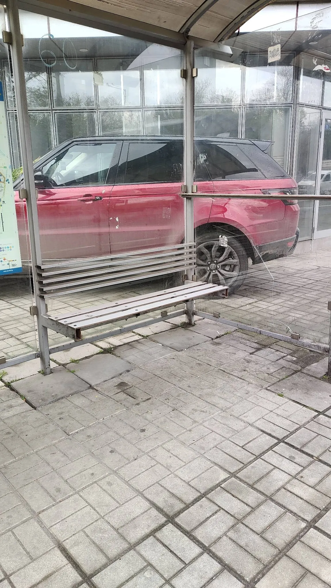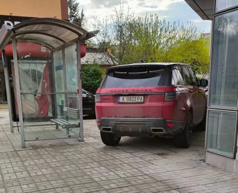 От шофьора нямало и следа, а пешеходците били принудени да се промъкват край возилото. А това далеч не изглежда лесна задача – от едната страна е металната конструкция на спирката, а от другата – фасадата на сграда и зеленичък храст.