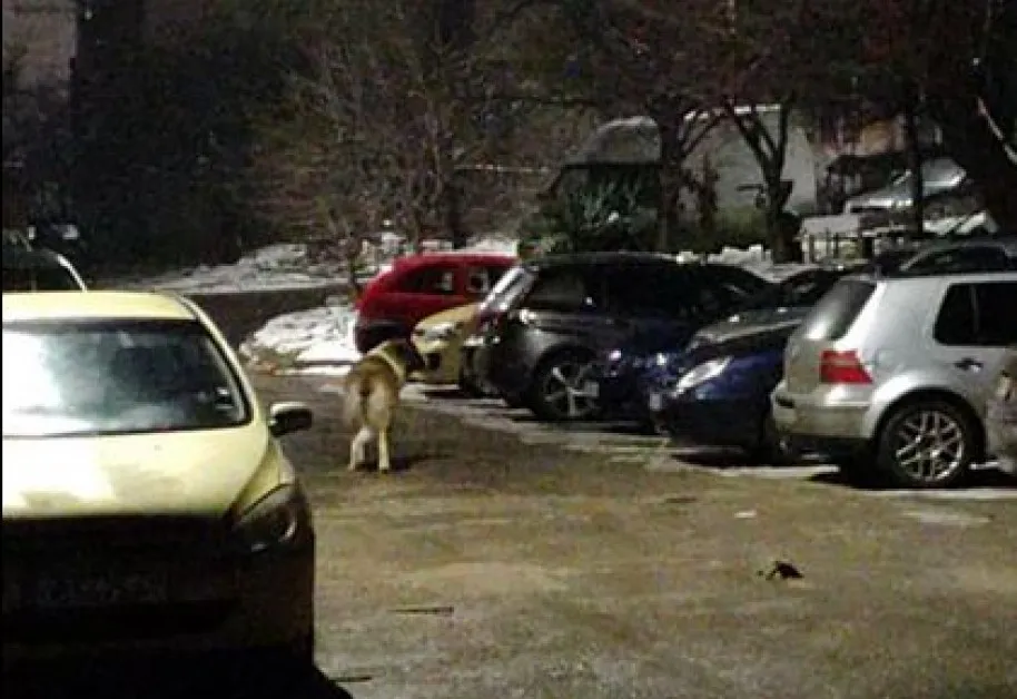 Вече втора вечер по това време две кучета едра порода обикалят в района на блок 309 и блок 316. Снимката е от тази вечер — кучето е само едно. Тъй като синът ми разхожда нашето куче вечер, ако може собственикът им да си ги прибере, тъй като нямат нито каишка, нито намордник и не се знае дали не са опасни.
