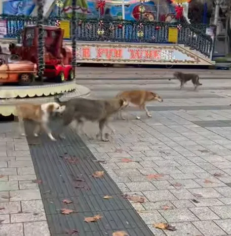 Някои плахо оглеждат от близката полянка, но други се спират край катерушките и добродушно мятат опашки, но появата им успява да стресне част от местните жители. Фрапиращото е, че едно от животните се опитва да се чифтоса с женско, което вероятно значи, че има и некастрирани женски – а съвсем скоро броят на безпризорните из улиците на града да скочи с поне 8–10 палета.