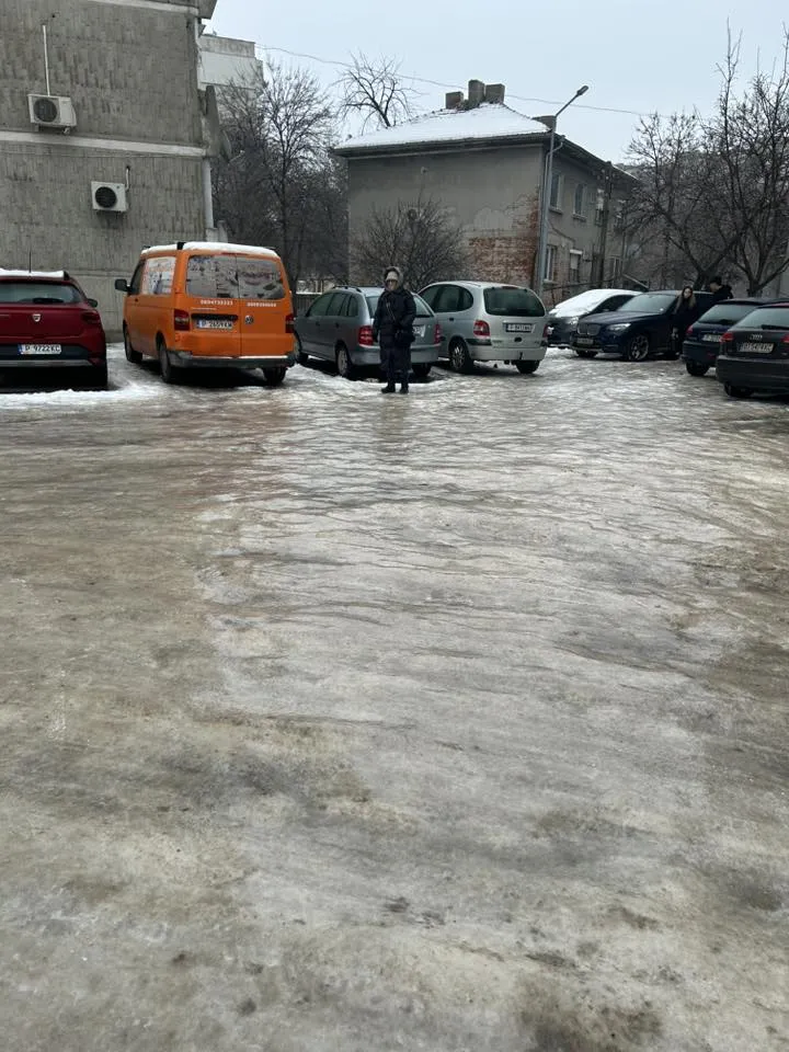 Дебел слой лед по улиците около блок „Родина“ в кв. Здравец Север в Русе създаде сериозна опасност за пешеходци и шофьори. Жител на района сигнализира в социалните мрежи за заледените участъци, като предупреждението бързо събра множество реакции и коментари от други русенци със сходни преживявания.