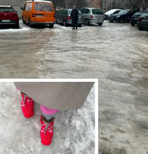 Дебел слой лед по улиците около блок „Родина“ в кв. Здравец Север в Русе създаде сериозна опасност за пешеходци и шофьори. Жител на района сигнализира в социалните мрежи за заледените участъци, като предупреждението бързо събра множество реакции и коментари от други русенци със сходни преживявания.