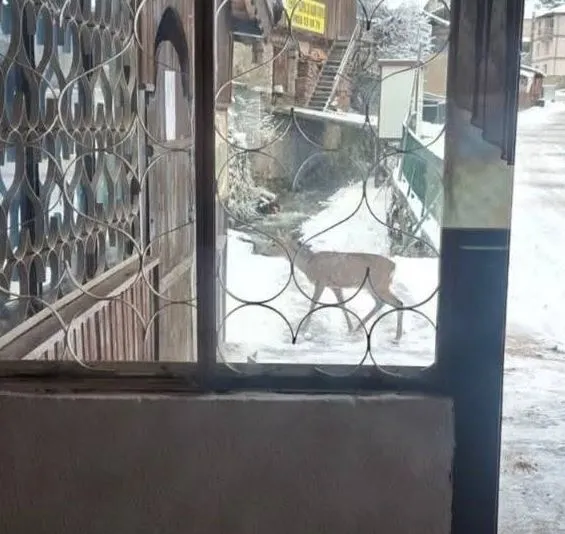 За необикновената среща разказва родопчанката Мина Кацарова във Facebook. Тя споделя и кадри, на които се вижда как сърната спокойно преминава през селото, сякаш е дошла на кратка разходка сред хората. На снимките грациозното създание крачи по заснежената улица между къщите, преди бързо да се отправи нагоре по склона и да изчезне в планината.