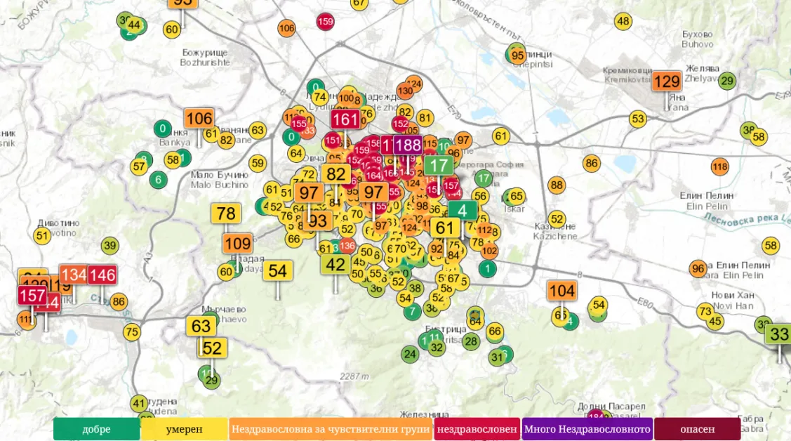 След вчерашната ни публикация, че се очаква повишение на нивото на ФПЧ до 150–200 µg/m³, прогнозите се сбъднаха. Към 12:00 часа на 20 декември нивата на финните прахови частици (ФПЧ) в столицата надхвърлиха нормата.