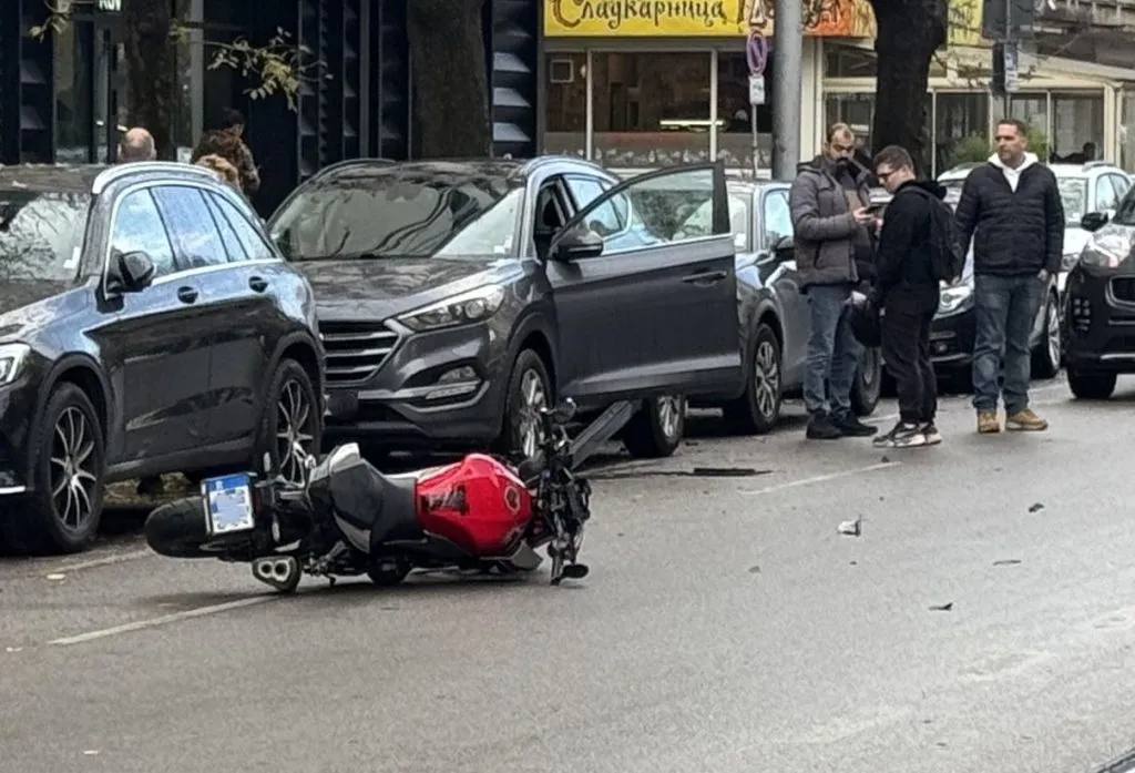 Инцидентът е на бул. "Витоша". Кадри от местпоризшествието показват мотор, лежащ на асфалта.