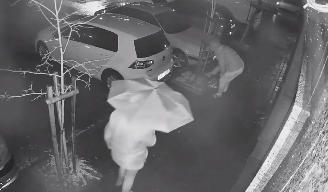 На разпространените кадри от охранителни камери се вижда как двамата преминават по тротоара, като мъжът държи в ръцете си предмет, приличащ на акумулаторен трион. Те се спират до всяко дърво, прецизно прерязват ствола му в основата, а след това продължават към следващата фиданка. В един от опитите си дори се вижда как се мъчат да откъснат ствола на дървото на ръка.