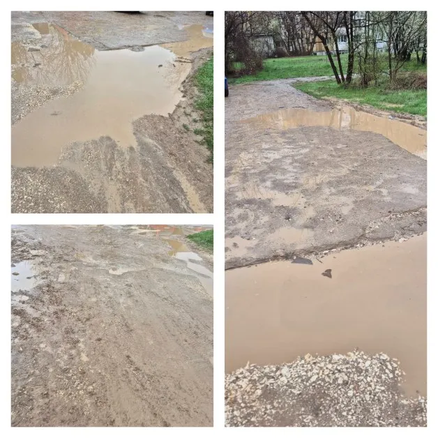 „Ако не е пепел, ще е кал до шия!“ – така жител описва абсурдната ситуация пред детска градина „Калина“ в Плевен. Снимки, публикувани в социалните мрежи, показват шокираща гледка – разбит път, огромни локви и кал, в която буквално затъват преминаващите.