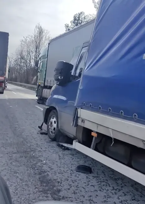 По данни на очевидци камион с украинска регистрация и товарен бус са се блъснали.