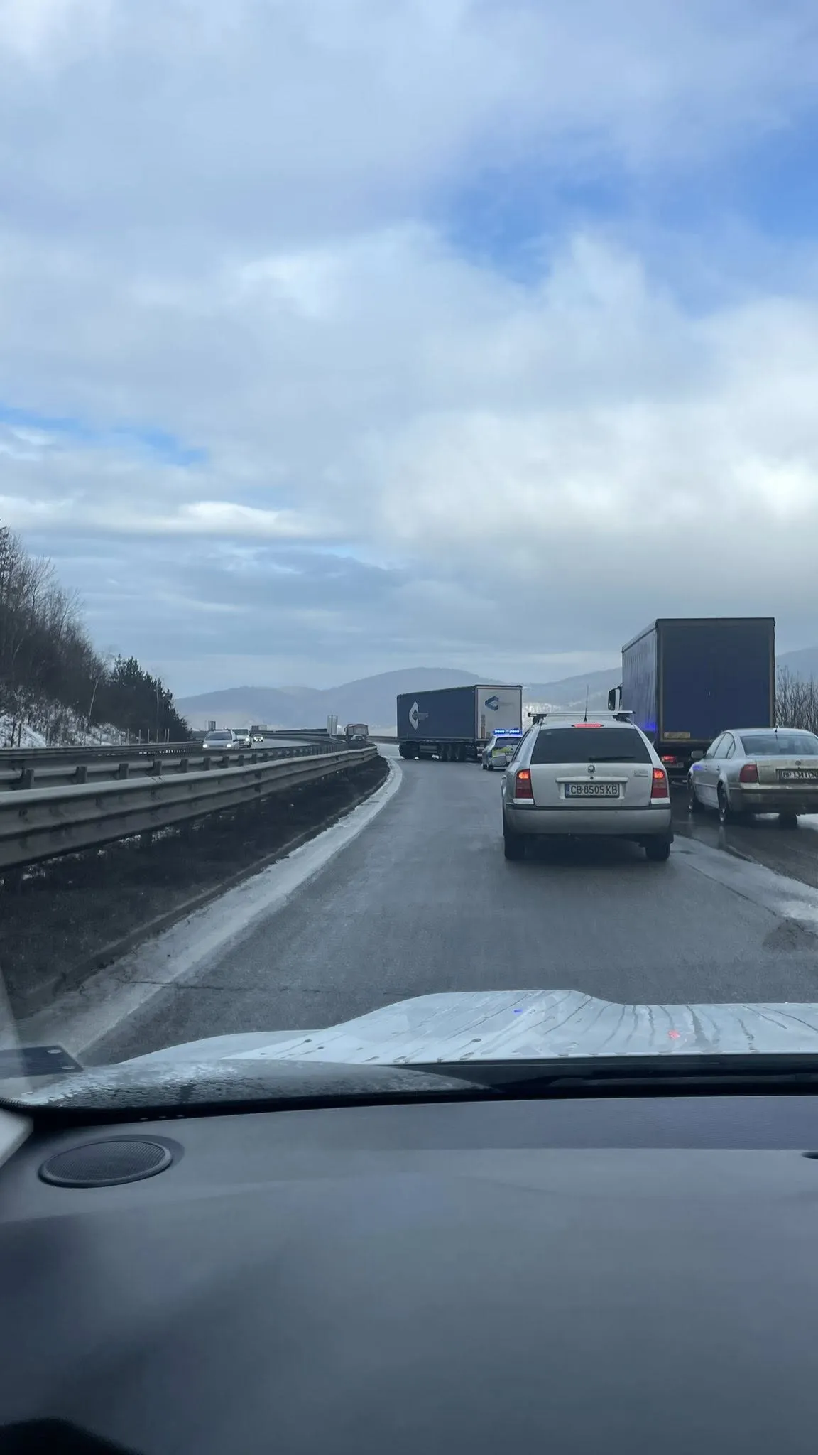 Инцидент е станал преди минути на автомагистрала Хемус, на спускането след излизане от тунел Витиня в посока Варна. За случая сигнализират шофьори в социалните мрежи, които призовават водачите да бъдат изключително внимателни при преминаване през участъка.