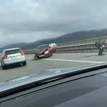 Инцидент на АМ "Тракия", кола е с разбита предница СНИМКИ
