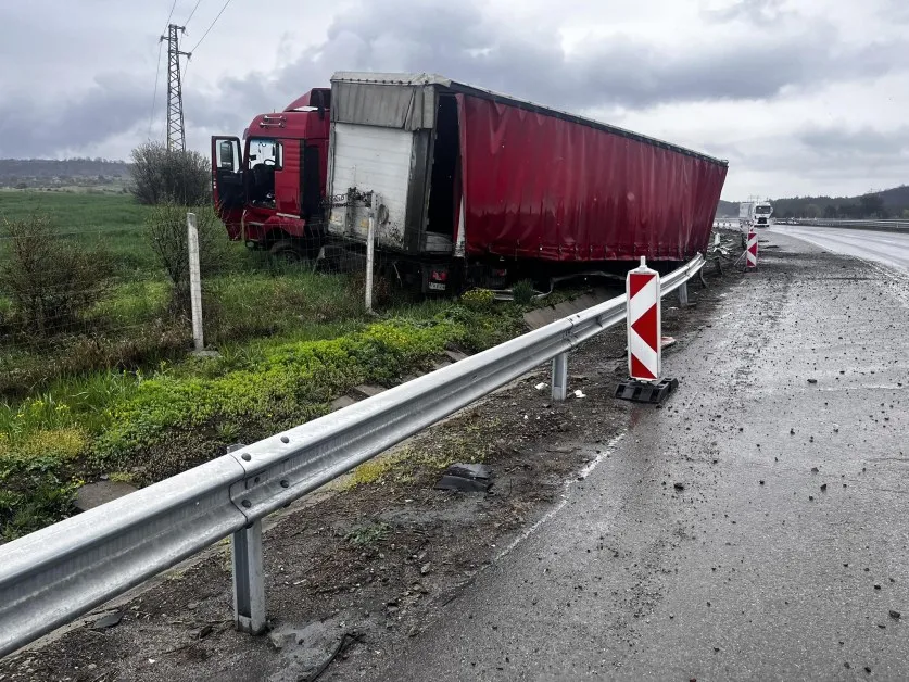 Нов инцидент стана на АМ "Хемус" днес. Камион се е обърнал извън платното за движение след Жерково в посока София. за това сигнализират очевидци.